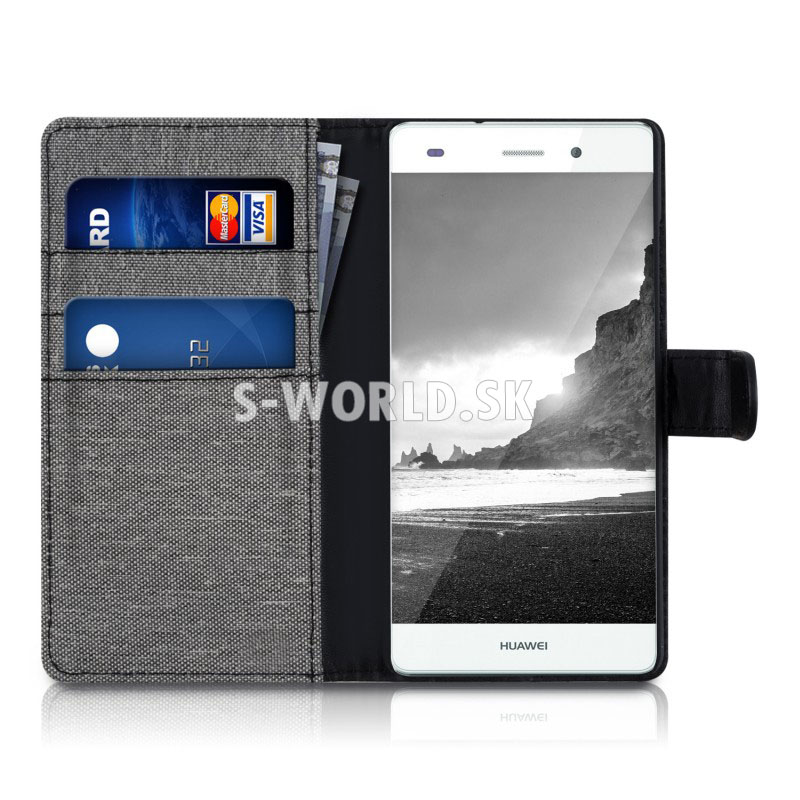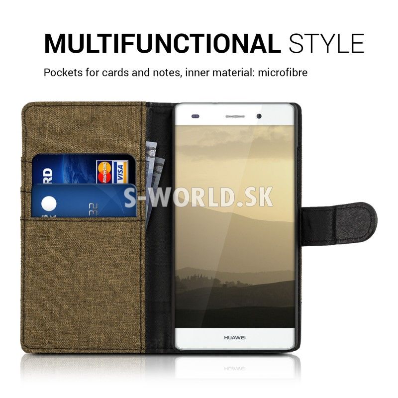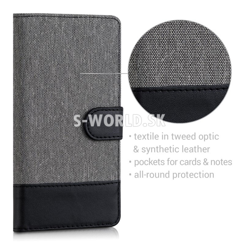 Dizajnové dvojfarebné puzdro v kombinácii odolného tvídového textilu a umelej kože pre Huawei P8 Lite ponúka vynikajúcu ochranu proti otrasom a nárazom.