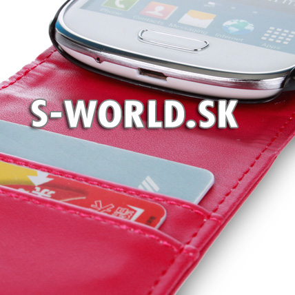 Elegantné kožené puzdro s bočným otváraním pre Samsung Galaxy S3 Mini (i8190) so záložkami na kreditné karty alebo vizitky.