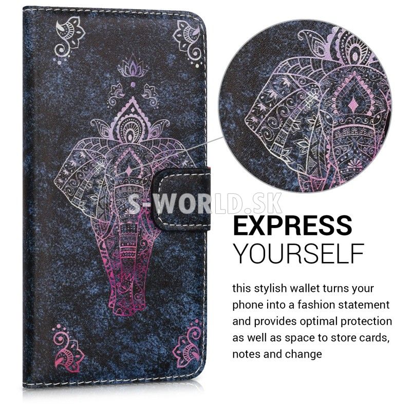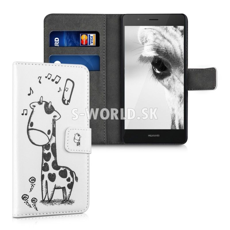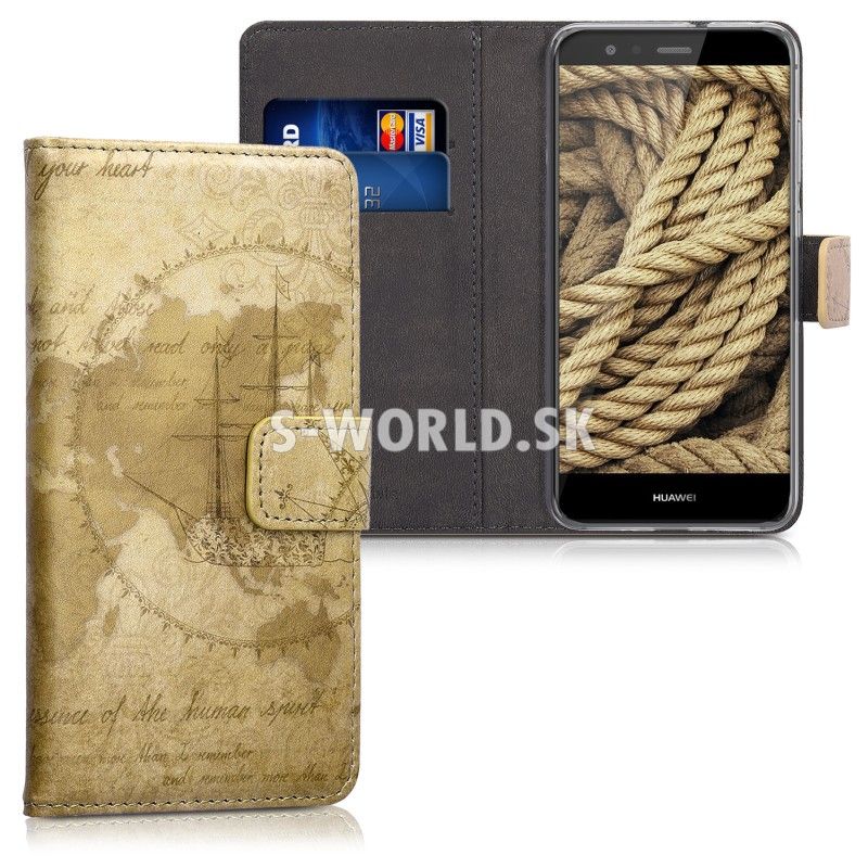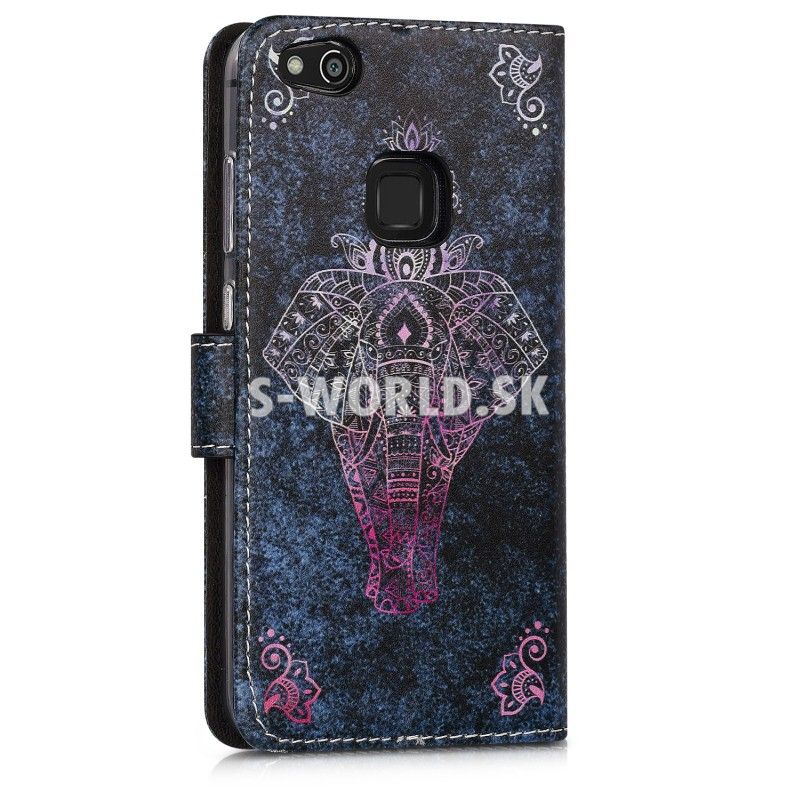 Vzorované kožené puzdro s bočným otváraním pre Huawei P9 Lite so záložkami na kreditné karty alebo vizitky.