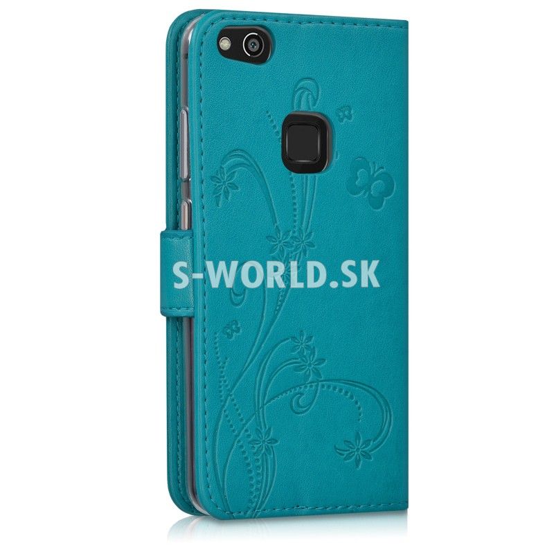 Vzorované koženkové puzdro s embosovanou potlačou s bočným otváraním pre Huawei P10 Lite so záložkami na kreditné karty alebo vizitky.