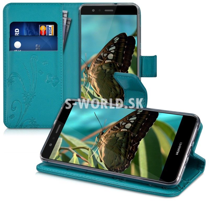 Vzorované koženkové puzdro s bočným otváraním pre Huawei P10 Lite so záložkami na kreditné karty alebo vizitky.