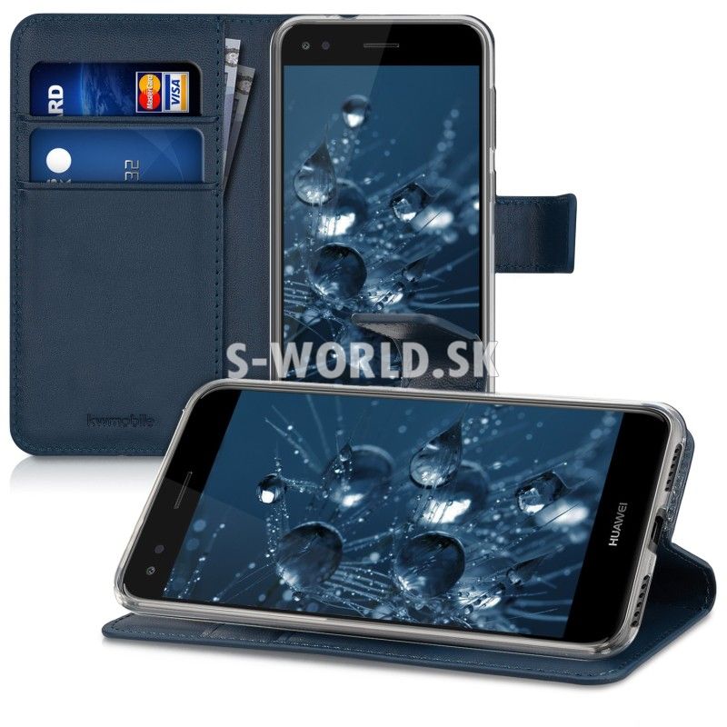 Elegantné koženkové puzdro s bočným otváraním pre Huawei P9 Lite Mini / Huawei Y6 Pro (2017) so záložkami na kreditné karty alebo vizitky.