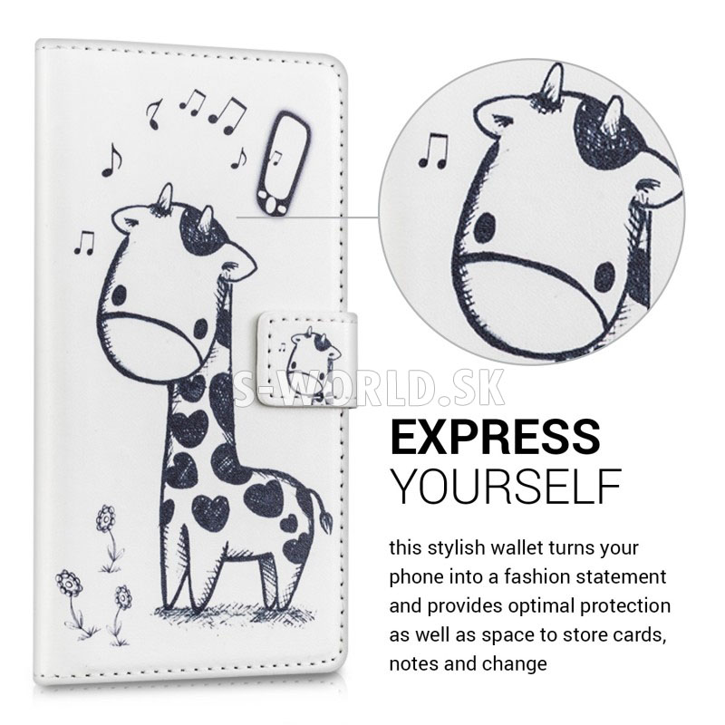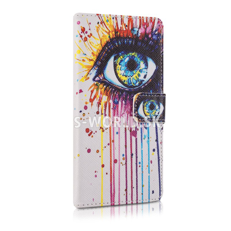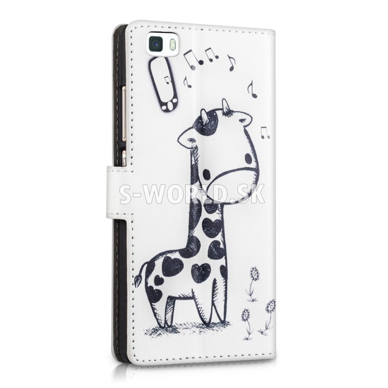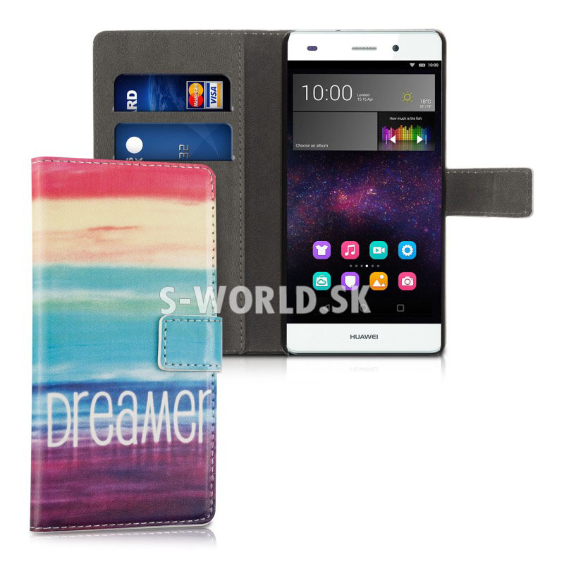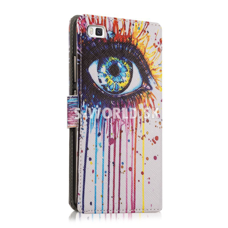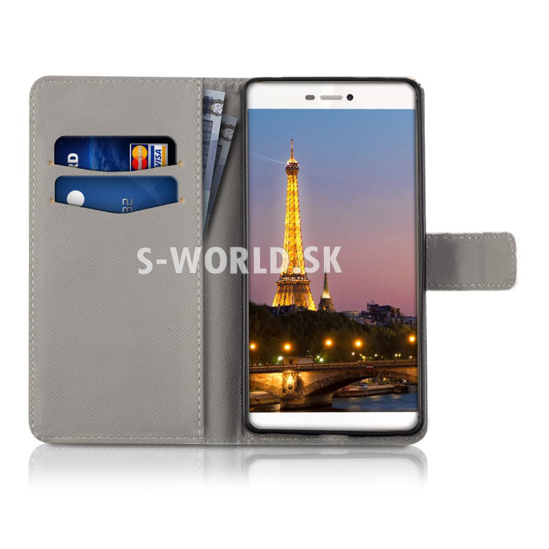 Vzorované kožené puzdro s bočným otváraním pre Huawei P8 Lite so záložkami na kreditné karty alebo vizitky.