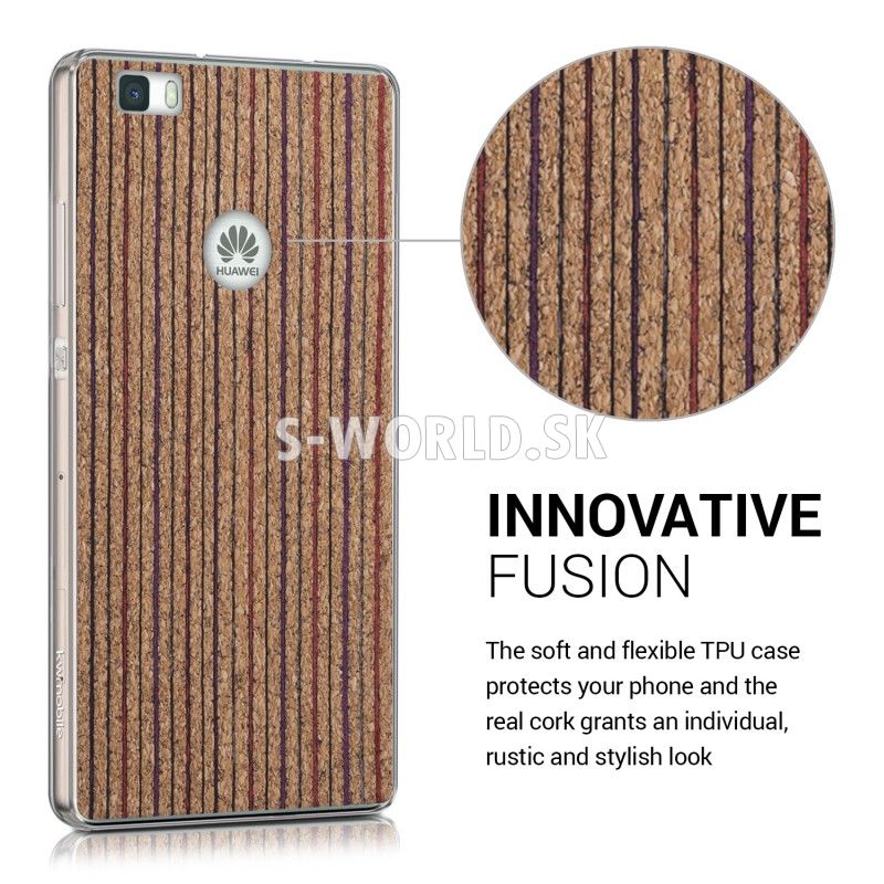 Chráňte svoj štýlový telefón Huawei P8 Lite s vysokokvalitným, proti prachu a proti šmyku odolným transparentným silikónovým obalom kombinovaným s pravým korkom.