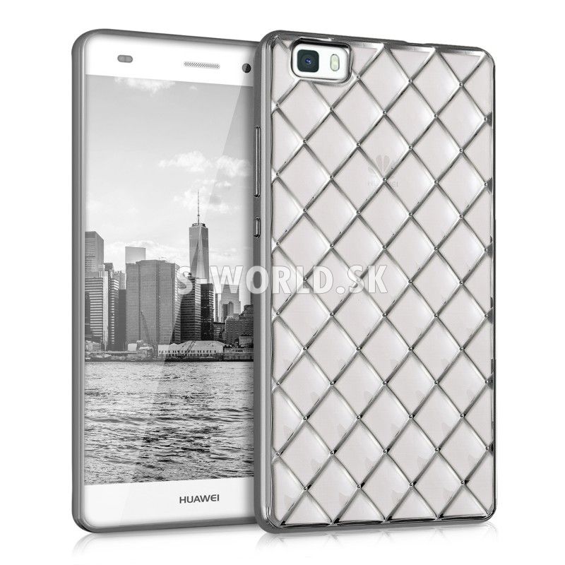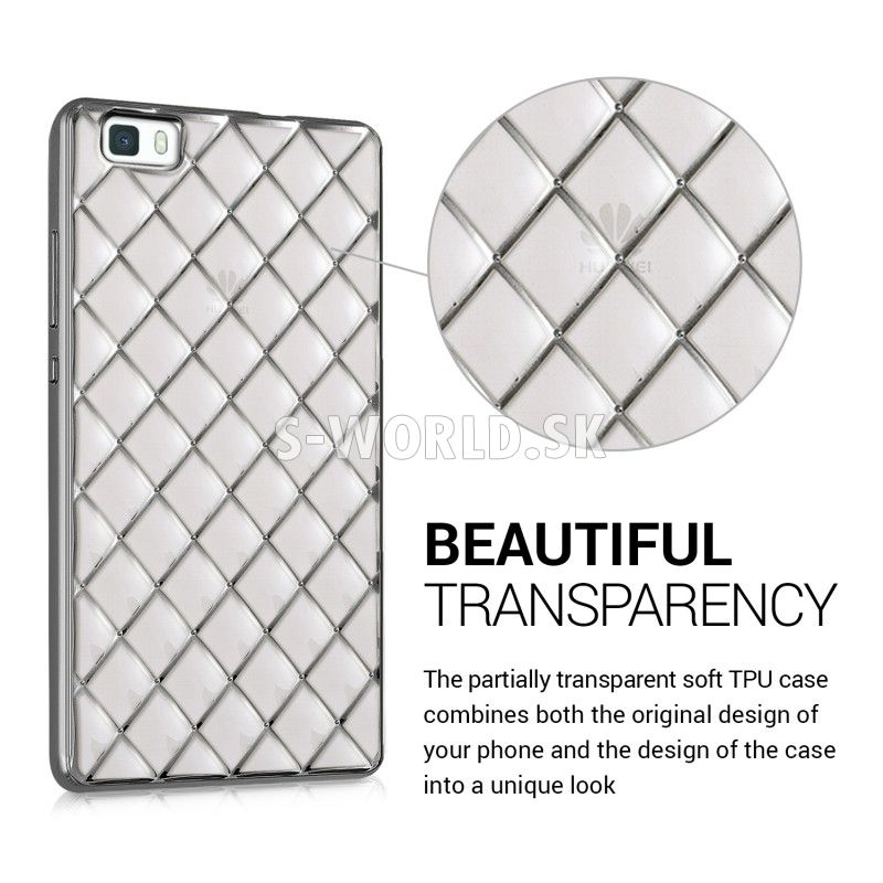 Chráňte svoj štýlový telefón Huawei P8 Lite s vysokokvalitným, proti prachu a proti šmyku odolným priehľadným silikónovým obalom so šedým antracitovým lemovaním v dizajne kryštálov diamantu.