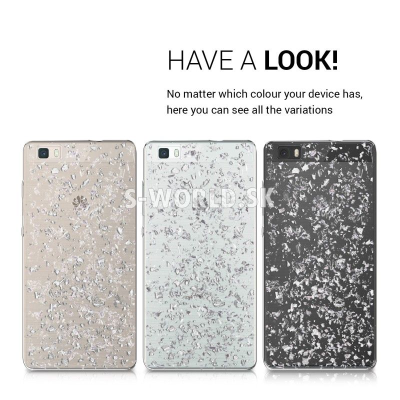 Chráňte svoj štýlový telefón Huawei P8 Lite s vysokokvalitným, proti prachu a proti šmyku odolným priehľadným silikónovým obalom v dizajne s lesklými vločkami na zadnej strane.