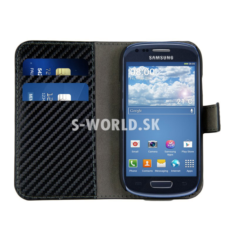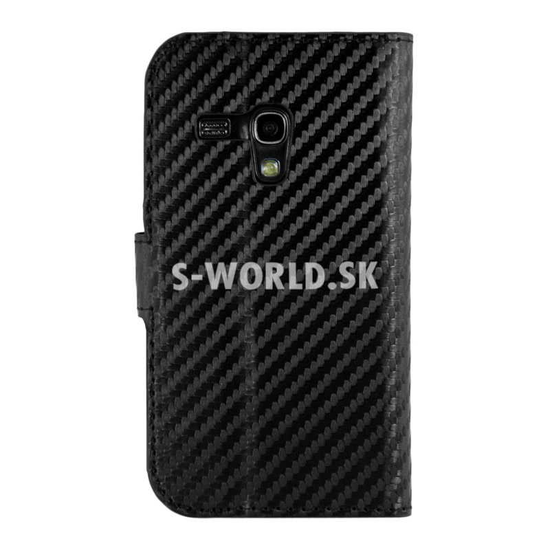 Elegantné kožené puzdro s bočným otváraním pre Samsung Galaxy S III Mini v karbónovom dizajne.