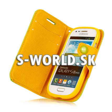 Elegantné kožené púzdro s bočným otváraním pre Samsung Galaxy S3 Mini so záložkami na kreditné karty alebo vizitky.