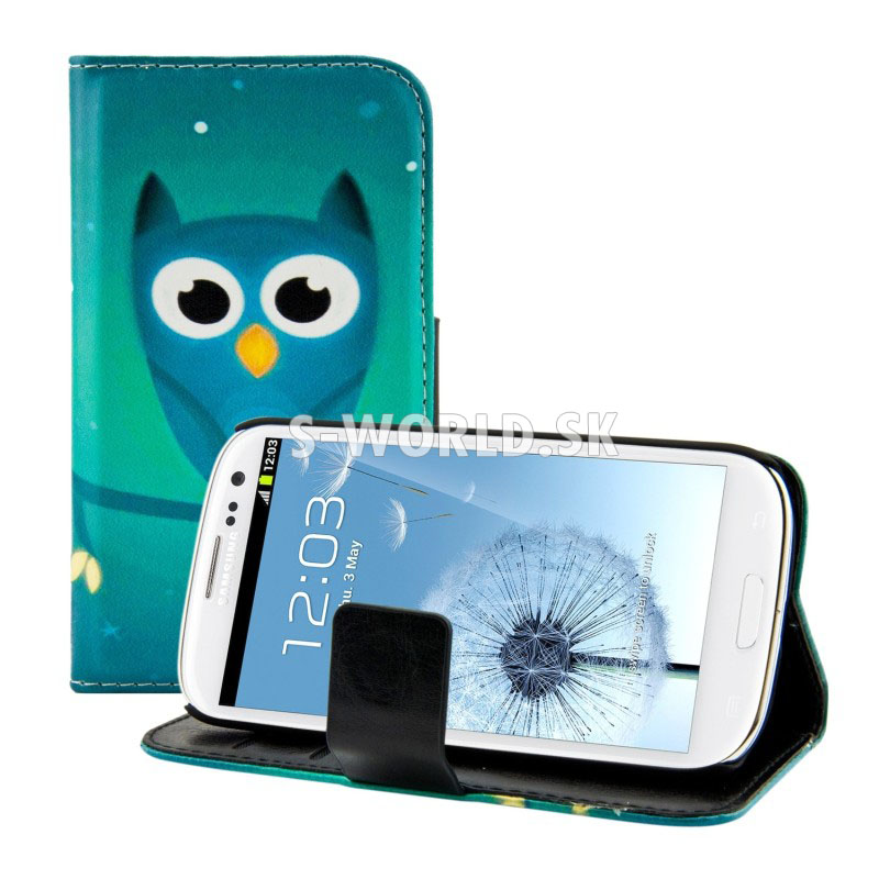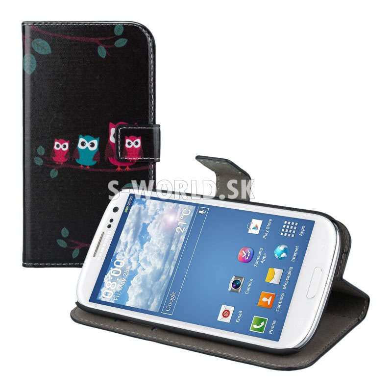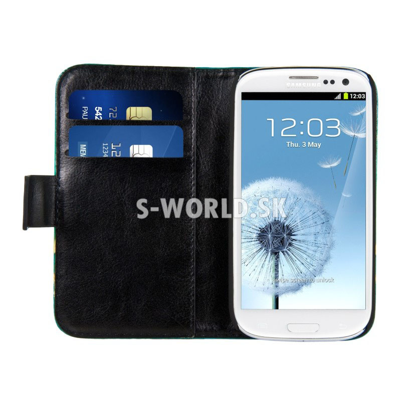 Elegantné kožené púzdro s bočným otváraním pre Samsung Galaxy S3 so záložkami na kreditné karty alebo vizitky.