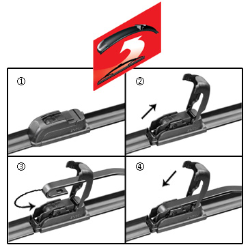 Aby mohli byť ploché stierače Aerotwin rýchlo a jednoducho upevnené na klasických ramenách (hákoch), vyvinul Bosch nový spôsob pripevňovania pomocou osvedčeného rychloupínacieho adaptéra Quick-Clip: stieracie rameno stačí do adaptéra iba zasunúť. Tým je výmena stieracích líšt rovnako jednoduchá ako doteraz. Namontovaný adaptér je zakrytý ochranným krytom. Má lepšiu aerodynamiku a zjednocuje vzhľad.