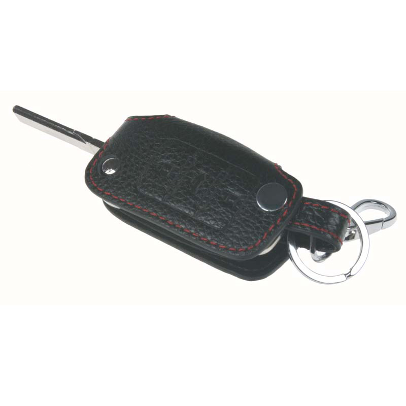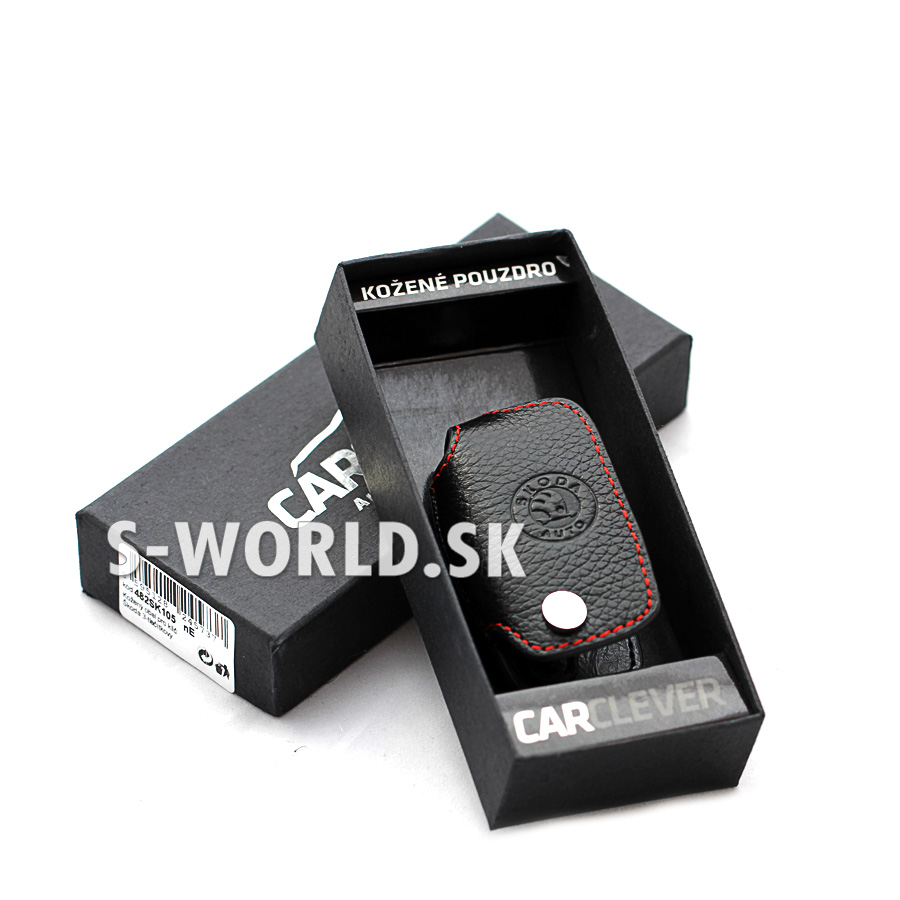 Čierne kožené puzdro pre auto kľúč Škoda. Chráni kľúč pred pádom, znečistením a opotrebovaním (vhodné pre služobné vozidlá) a navyše vyzerá veľmi elegantne. Ovládač je možné ovládať priamo v puzdre, pri použití kľúča stačí len vyklopiť. Vyrobené z veľmi kvalitnej kože s prešitím červenou niťou.