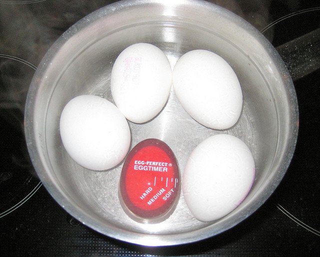 Stačí ho hodiť medzi ostatné vajíčka, ktoré varíte a toto červené vajíčko bude vypĺňať tmavou farbou od okraja, čím vytvára hranicu podľa ktorej viete kedy je vajíčko také aké potrebujete, jednoduchšie ako vysvetlenie je pozrieť sa na obrázok:)
