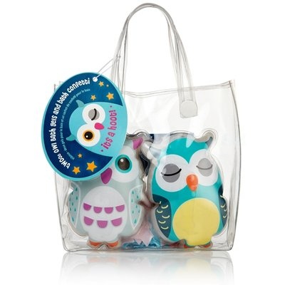 2 rozkošné sovičky obsahujúce luxusný sprchový gél s hviezdičkovými rozpustnými konfetami uvoľňujúce arómu v darčekovej taštičke.