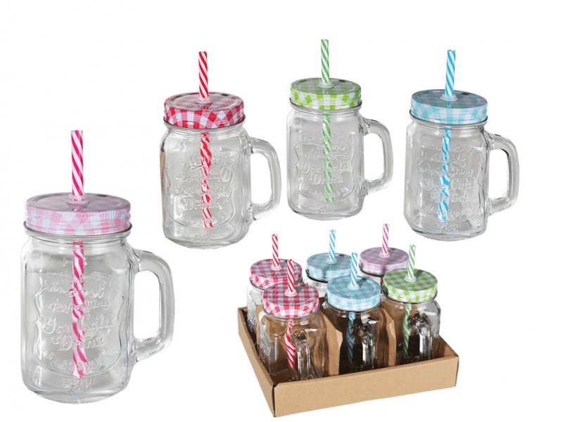 Pohár s vekom a slamkou je ideálny na miešané drinky. Záleží len na Vás, že na čo máte práve chuť.
