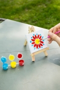 Mini set na maľovanie poslúži nielen maliarom, ale aj bežnému človeku. Táto malá a roztomilá sranda urobí radosť snáď každému. Majstrovské dielo sa dá na plátno preniesť pomocou červeného, žltej a modrej farby. Set tiež zahŕňa štetec.
