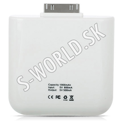 Táto prenosná elektrická zásobáreň Vám umožní dobíjať Váš iPod/iPhone kdekoľvek a kedykoľvek. Už sa Vám nikdy nemôže stať, že sa Vám vybije Váš iPod/iPhone. Jednoducho zapnite tlačidlo do polohy ON a máte k dispozícii 1900 mAh lítiovú batériu.