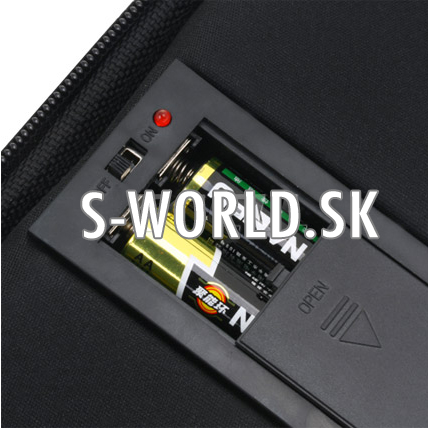 Púzdro s reproduktormi je napájané 2xAA batériami (nie je súčasťou balenia).