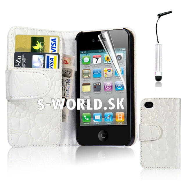 Elegantné kožené púzdro s bočným otváraním pre iPhone 4 v štýle krokodílej kože.