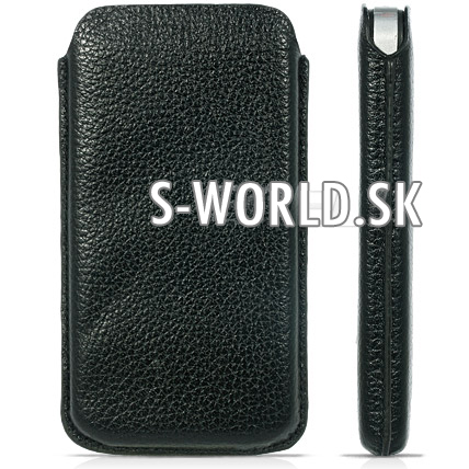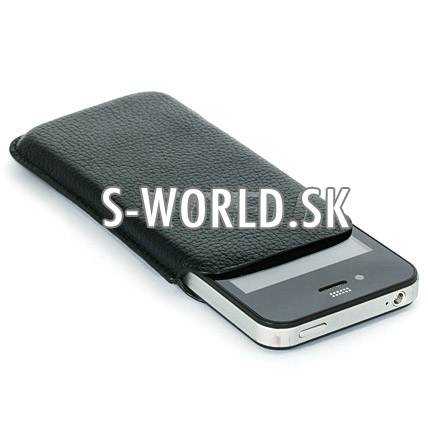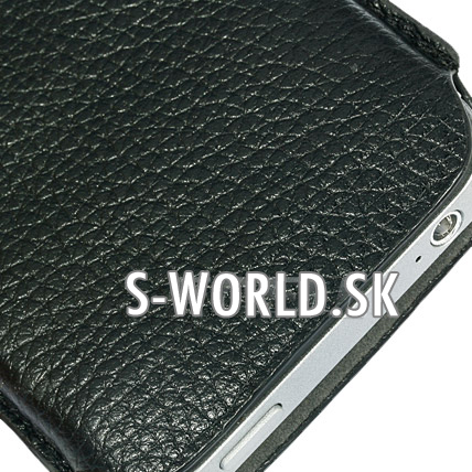 Luxusné kožené púzdro v čiernej farbe s čiernym prešívaním pre iPhone 4.