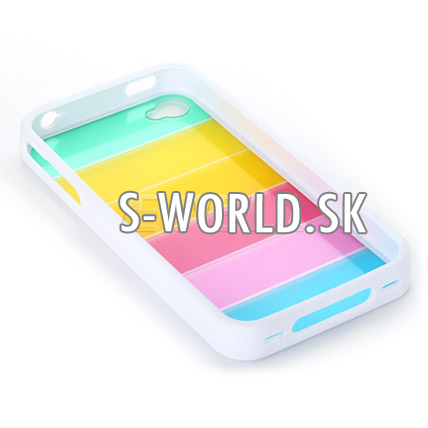 Dajte Vášmu iPhone 4 štýlový vzhľad s atraktívnym zadný krytom so silikónovým lemovaním v dúhovom dizajne. Zadná časť je vyrobená z tvrdého a odolného plastu s pásmi dúhy. Lemovanie krytu je vyrobené z odolnej a hladkej gumy a silikónu pre jednoduché aplikovanie obalu na telefón - stačí natiahnuť. Tento obal ochráni okraje a zadnú časť Vášho iPhone 4 dokonale.