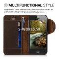 Značkové peňaženkové puzdro z pravej kože od výrobcu Kalibri pre Apple iPhone 5 / 5S / SE so záložkami na kreditné karty alebo vizitky.