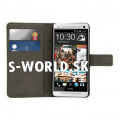 Elegantné kožené púzdro s bočným otváraním pre HTC One Mini 2 so záložkami na kreditné karty alebo vizitky.