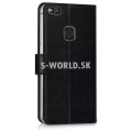 Elegantné koženkové puzdro s bočným otváraním pre Huawei P10 Lite so záložkami na kreditné karty alebo vizitky.