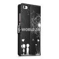 Vzorované kožené puzdro s bočným otváraním pre Huawei P8 Lite so záložkami na kreditné karty alebo vizitky.
