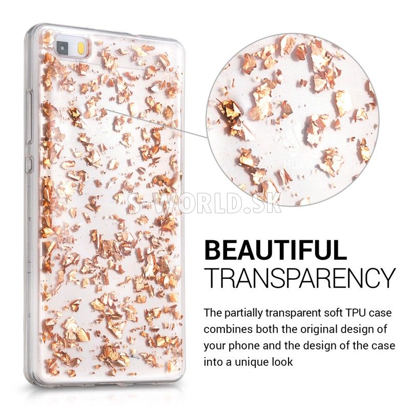 Chráňte svoj štýlový telefón Huawei P8 Lite s vysokokvalitným, proti prachu a proti šmyku odolným priehľadným silikónovým obalom v dizajne s lesklými vločkami na zadnej strane.
