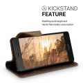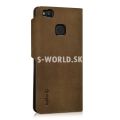 Značkové peňaženkové puzdro z pravej kože od výrobcu Kalibri pre Huawei P9 Lite so záložkami na kreditné karty alebo vizitky.