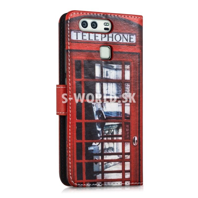Vzorované kožené puzdro s bočným otváraním pre Huawei P9 so záložkami na kreditné karty alebo vizitky.