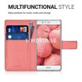 Elegantné koženkové puzdro s bočným otváraním pre Huawei P9 so záložkami na kreditné karty alebo vizitky.