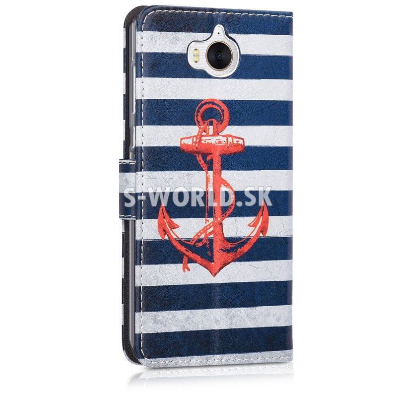 Elegantné vzorované koženkové puzdro s bočným otváraním pre Huawei Y6 (2017) so záložkami na kreditné karty alebo vizitky.