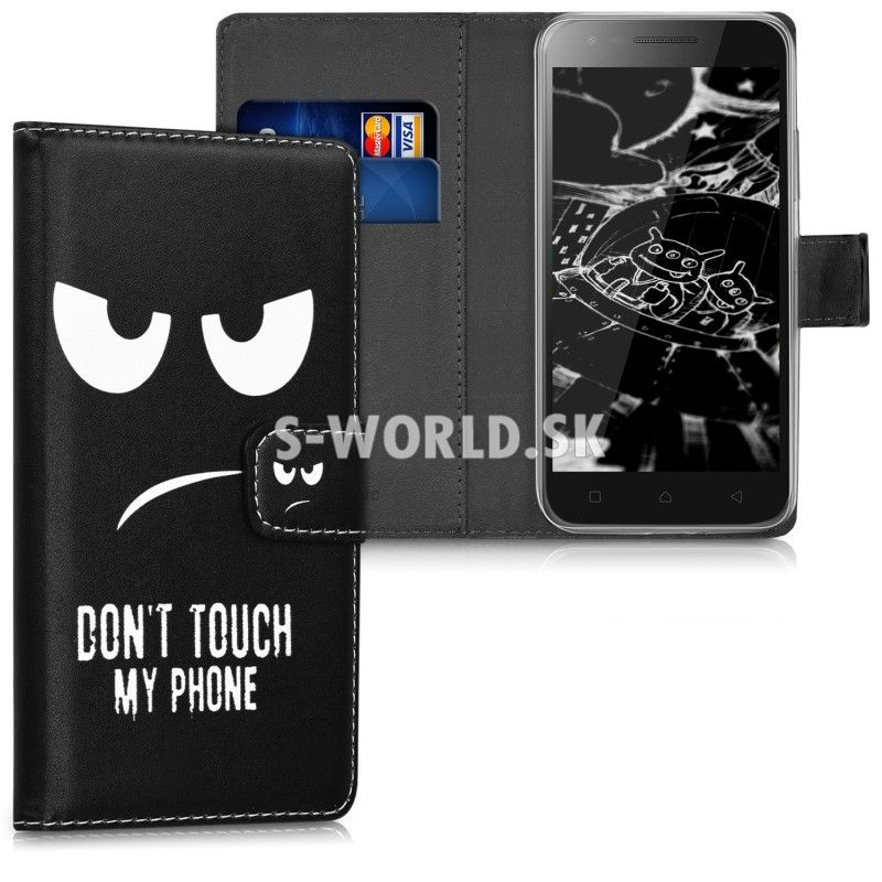 Peňaženkové koženkové puzdro s bočným otváraním pre Lenovo C2 so záložkami na kreditné karty alebo vizitky.