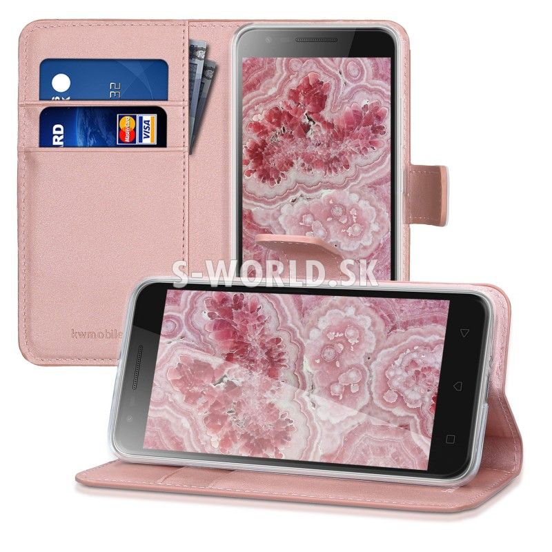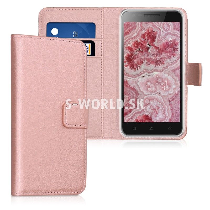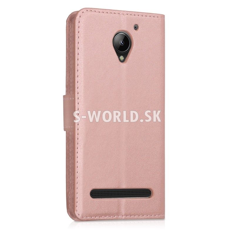 Peňaženkové koženkové puzdro s bočným otváraním pre Lenovo C2 so záložkami na kreditné karty alebo vizitky.
