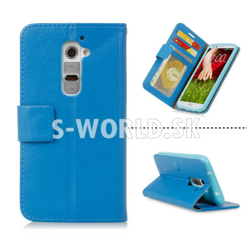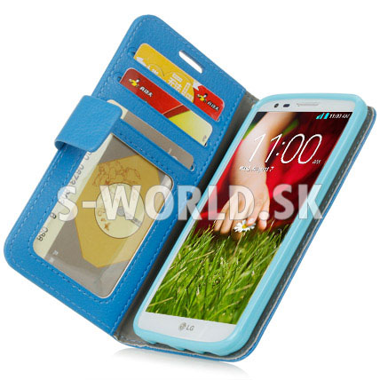 Elegantné koženkové puzdro s bočným otváraním pre LG G2 D802 so záložkami na kreditné karty alebo vizitky.