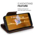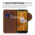 Značkové peňaženkové puzdro z pravej kože od výrobcu Kalibri pre Motorola Moto G6 so záložkami na kreditné karty alebo vizitky.