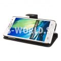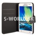 Elegantné kožené puzdro s bočným otváraním pre Samsung Galaxy A3 (A300) so záložkami na kreditné karty, vizitky a bankovky.