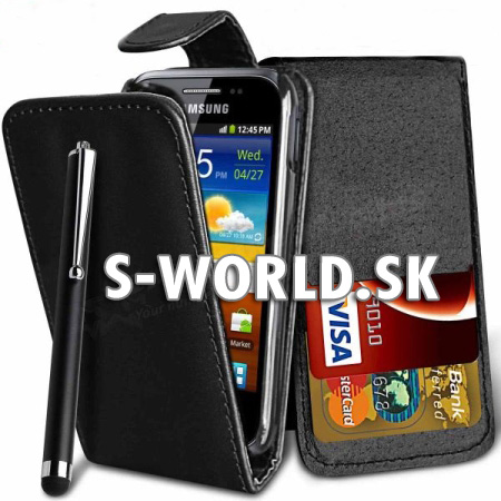 Elegantné kožené púzdro s magnetickým systémom pre Samsung Galaxy Ace 2 so záložkami na kreditné karty alebo vizitky.