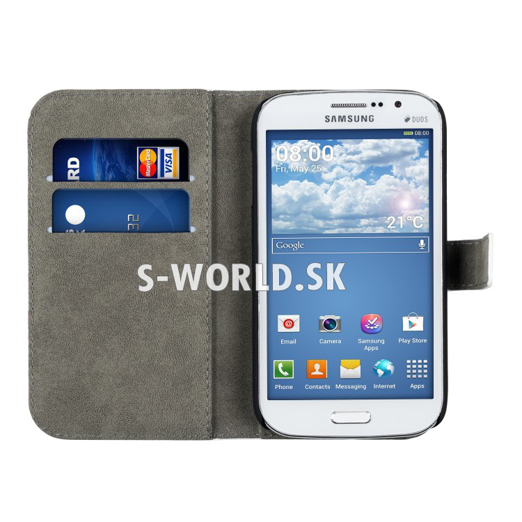 Elegantné kožené púzdro s bočným otváraním pre Samsung Galaxy Grand Neo / Duos (i9060) so záložkami na kreditné karty alebo vizitky.