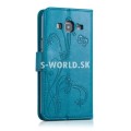 Elegantné embosované kožené puzdro s bočným otváraním pre Samsung Galaxy J3 (2016) so záložkami na kreditné karty alebo vizitky.