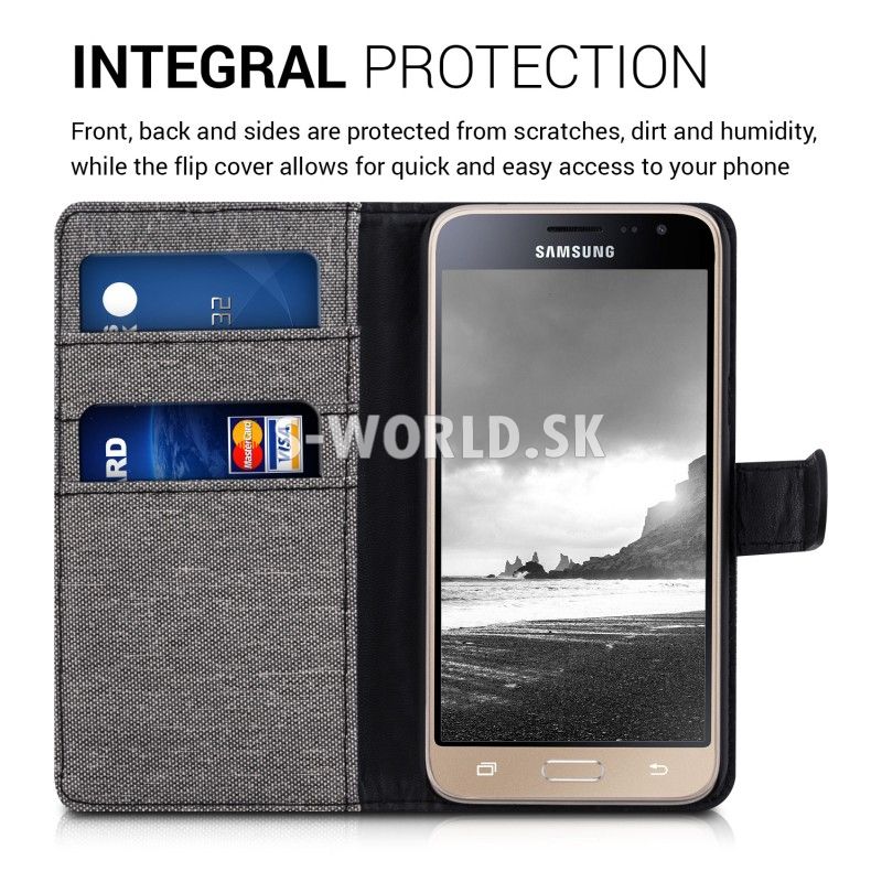 Dizajnové dvojfarebné puzdro v kombinácii odolného tvídového textilu a umelej kože pre Samsung Galaxy J3 (2016) ponúka vynikajúcu ochranu proti otrasom a nárazom. Štýlové puzdro poskytuje Vášmu telefónu komplexnú ochranu zatiaľ čo vnútorná časť vyrobená z mikrovlákna poskytuje ochranu pre displej.