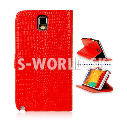 Elegantné koženkové puzdro v dizajne krokodílej kože s bočným otváraním pre Samsung Galaxy Note 3 so záložkami na kreditné karty alebo vizitky.