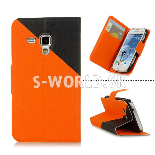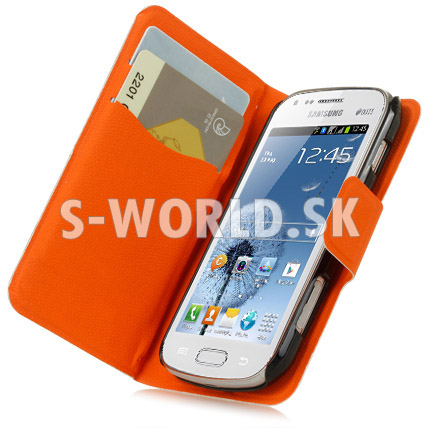 Elegantné kožené puzdro s bočným otváraním pre Samsung Galaxy S Duos / Trend so záložkami na kreditné karty alebo vizitky.