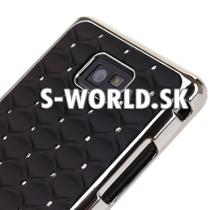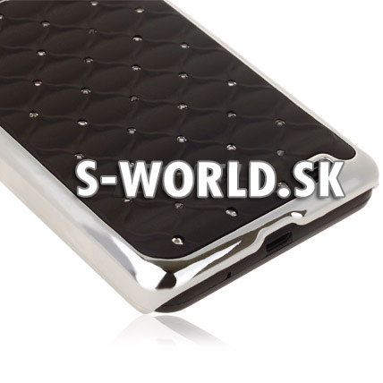 Zadný kryt s lesklým chrómovaným rámikom a diamantmi dodá sofistikovaný vzhľad Vášmu telefónu.