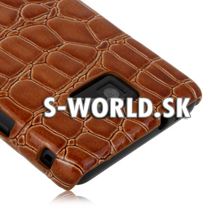 Kryt so vzorom krokodílej kože chráni zadnú stranu mobilného telefónu. Je vyrobený z lesklej kože, ktorá dodáva telefónu príťažlivý inovatívny vzhľad. Kryt chráni telefón proti škrabancom alebo šmuhám. Oblé hrany ponúkajú najlepšiu ochranu pri zachovaní štíhlej línie a vzhľadu telefónu. Môžete zachovať nový vzhľad vášho mobilného telefónu, kryt poskytuje ochranu proti nárazom a udržiava kompaktné rozmery.