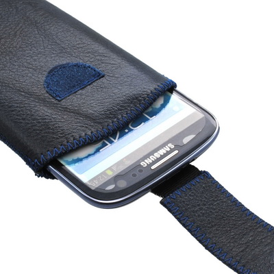Vsuvka z pravej kože, ručne šitá. Vyťahovacie pútko s uzatváraním na suchý zips. Veľkosť Samsung i9300 Galaxy S3, rozmer: 73x140 mm. Vyrobené na Slovensku.
