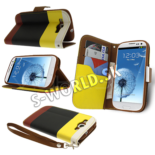 Elegantné kožené púzdro s bočným otváraním pre Samsung Galaxy S3 so záložkami na kreditné karty alebo vizitky.