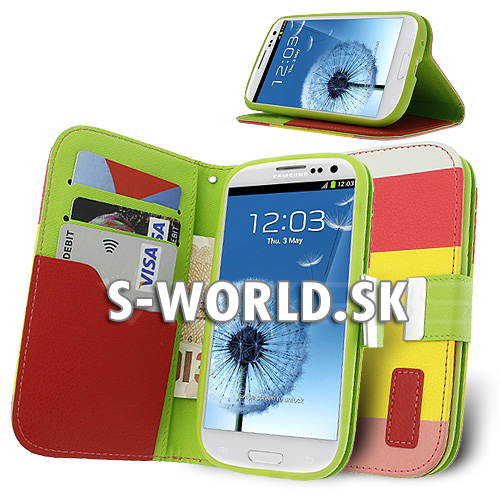 Elegantné kožené púzdro s bočným otváraním pre Samsung Galaxy S3 so záložkami na kreditné karty alebo vizitky.