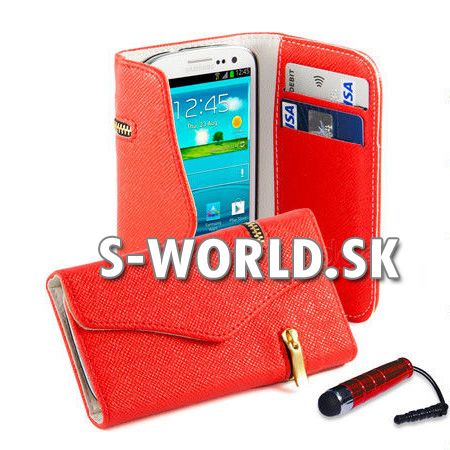 Elegantné kožené púzdro s bočným otváraním pre Samsung Galaxy S3 so záložkami na kreditné karty alebo vizitky.